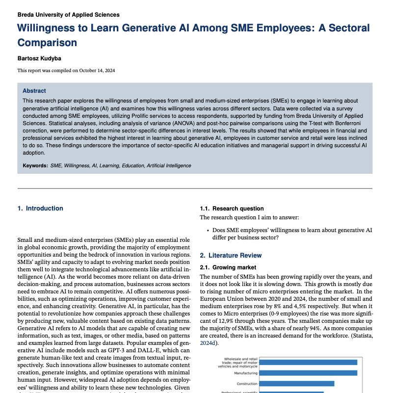 The study using Prolific to collect data from SME employees examined their willingness to learn generative AI, ANOVA and T-test ware applied